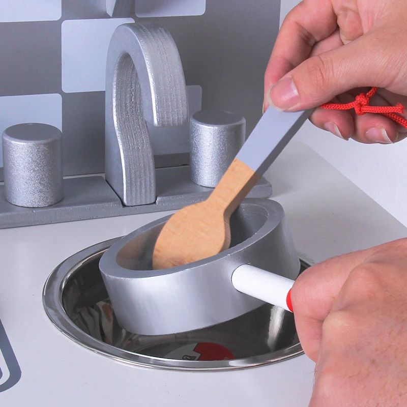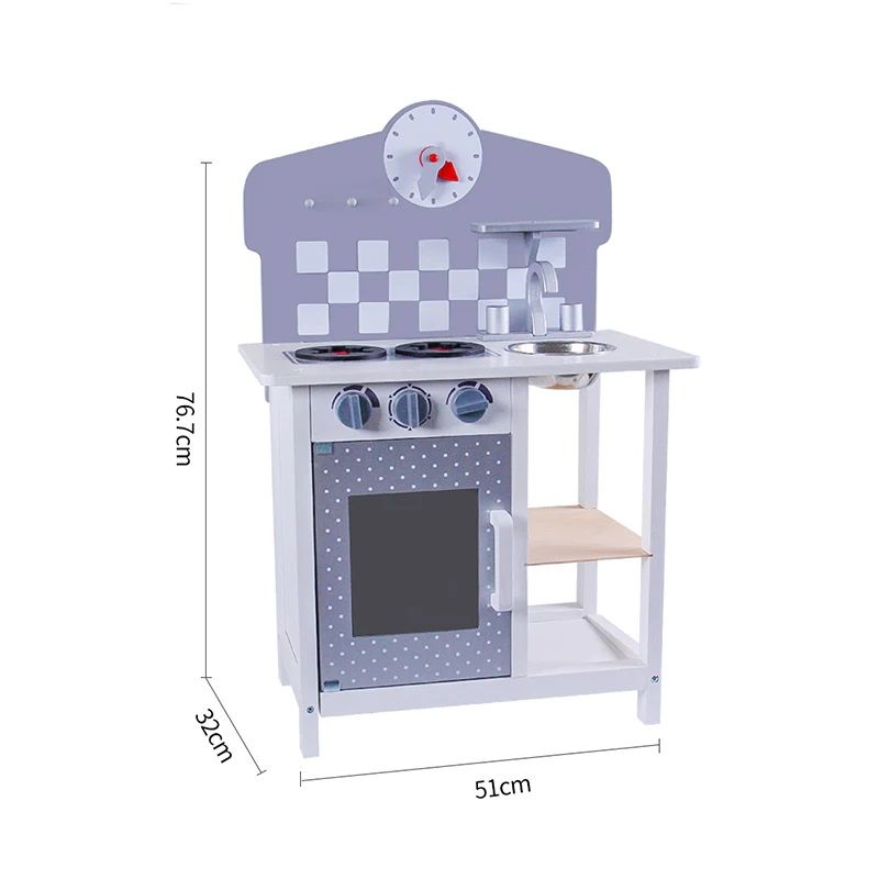 Развива въображението и фината моторика, както и въвежда децата по забавен начин в света на готвенето. Елегантният модел е изработен от висококачествен дървен материал с внимание към всеки детайл, със заоблени ръбове за по-голяма безопасност.