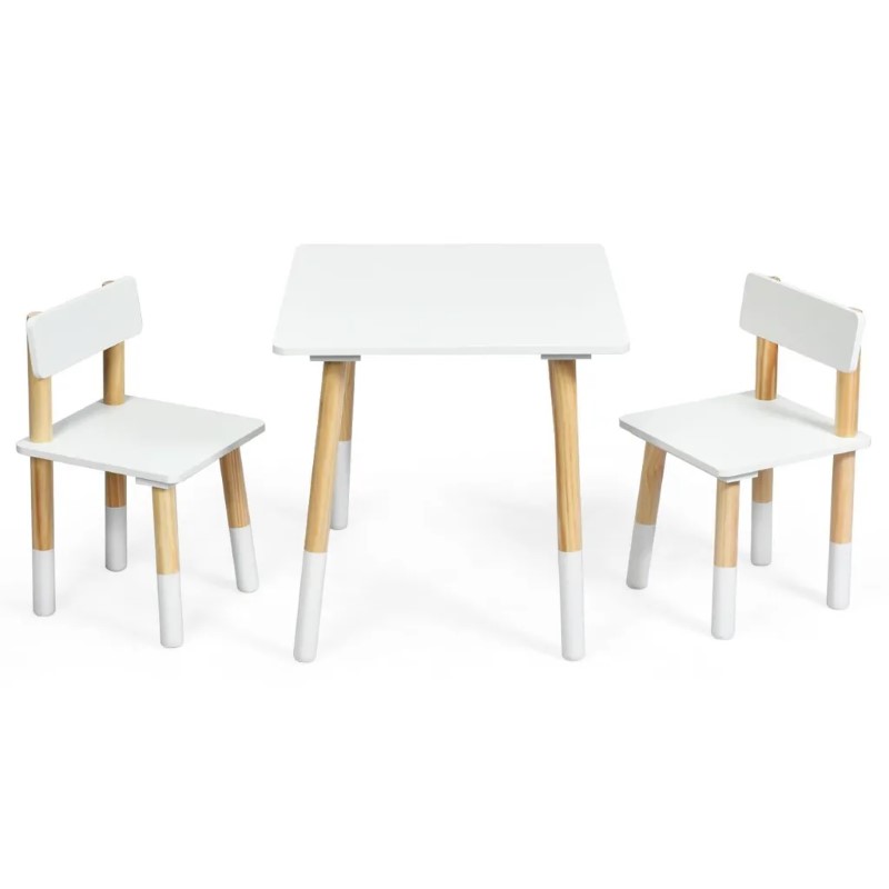 Комплектът от детска правоъгълна маса с 2 столчета, които чудесно ще паснат във всяка стая. Може да се използва като маса за хранене, маса за занимания или маса за учене, отговаряйки на различни нужди. Децата удобно могат да седнат на столчетата и да ядат, четат, рисуват и играят. Идеални са за всекидневна, детска стая, стая за игри, детски градини и ясли.