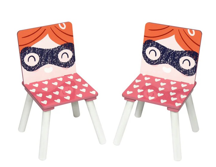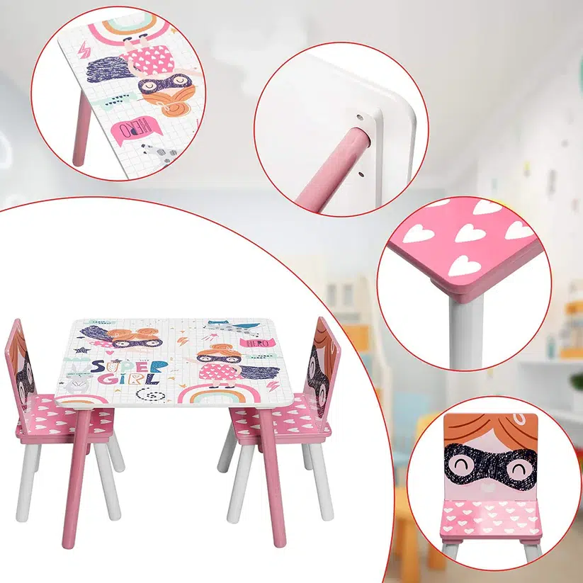 Детска дървена маса с 2 столчета, Super Girl, Ginger Home