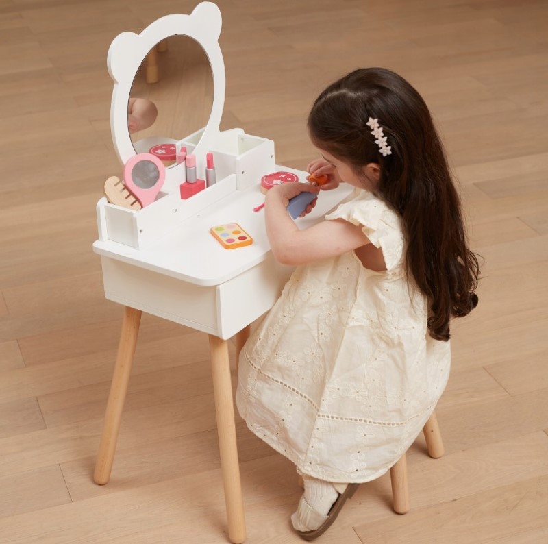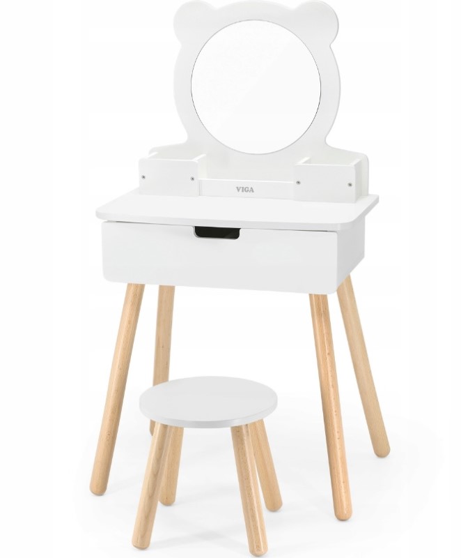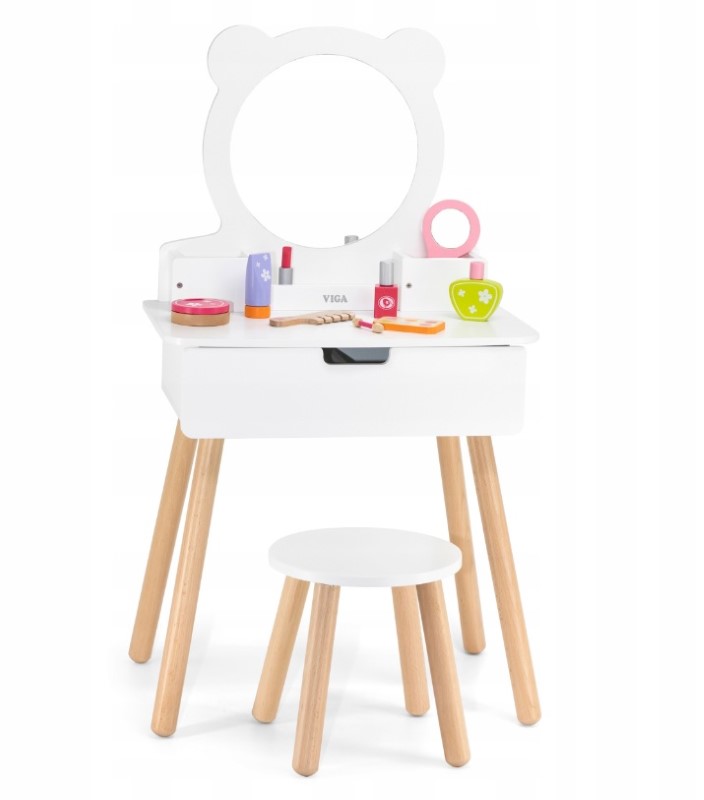 Детска дървена тоалетка с огледало и столче от Viga Toys – мечтаната мебел в стаята на всяко момиче.