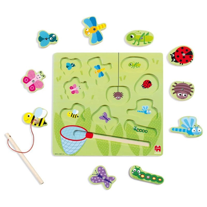 В комплекта ще намерите въдица с магнит, с помощта на която ще трябва да поставите правилното насекомо изобразено на пъзела.