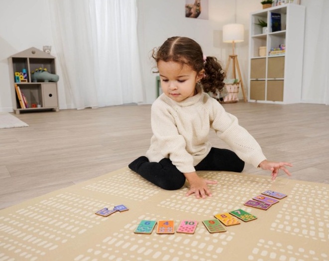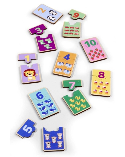 Всяко парче от пъзела съдържа число, комбинирано с различна фигура или животно. Вашето дете ще се учи как да сглобява съответните дървени плочи и развива първите си разбирания за числа и количества. Чрез съвпадение на числата с подходящите модели се насърчава разбирането на числата и се развиват моторни умения.