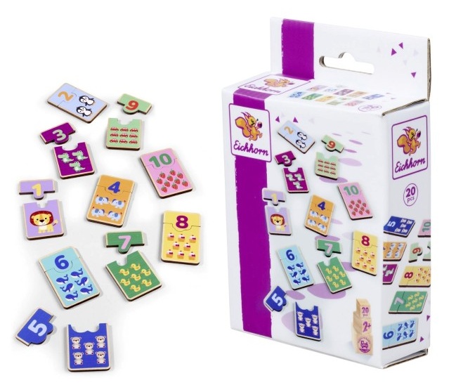 Детска образователна игра „Научи числата“ на Eichhorn в включени 20 дървени части, които ще помогната на децата да се запознаят с числата и постепенно да се научат да броят.