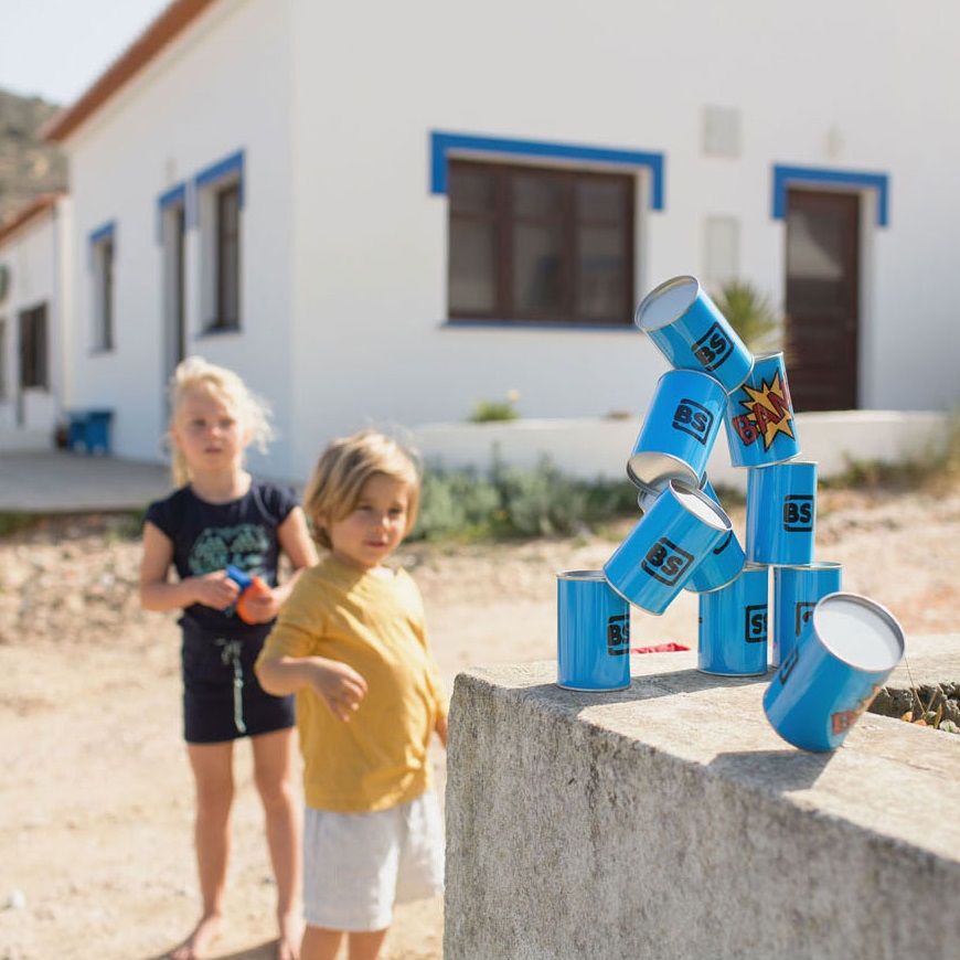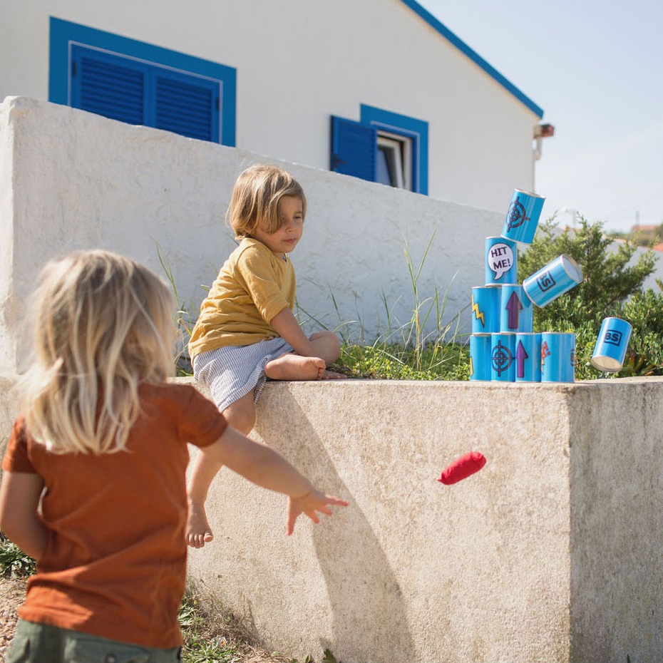 Целта на играта е да се изгради кула от кенчета, след което трябва да хвърлите торбичките с тежести и да се опитате да съборите всичките. Играчът съборил най-много, печели!