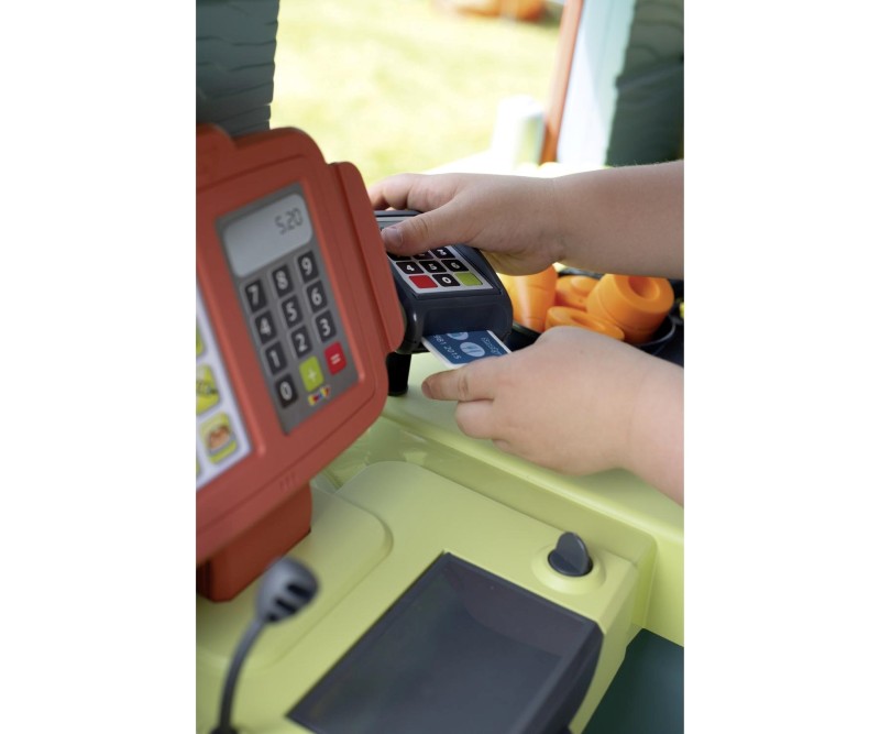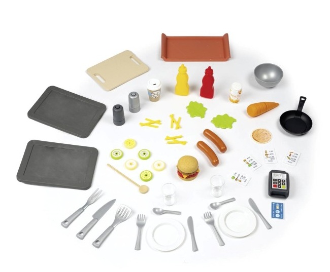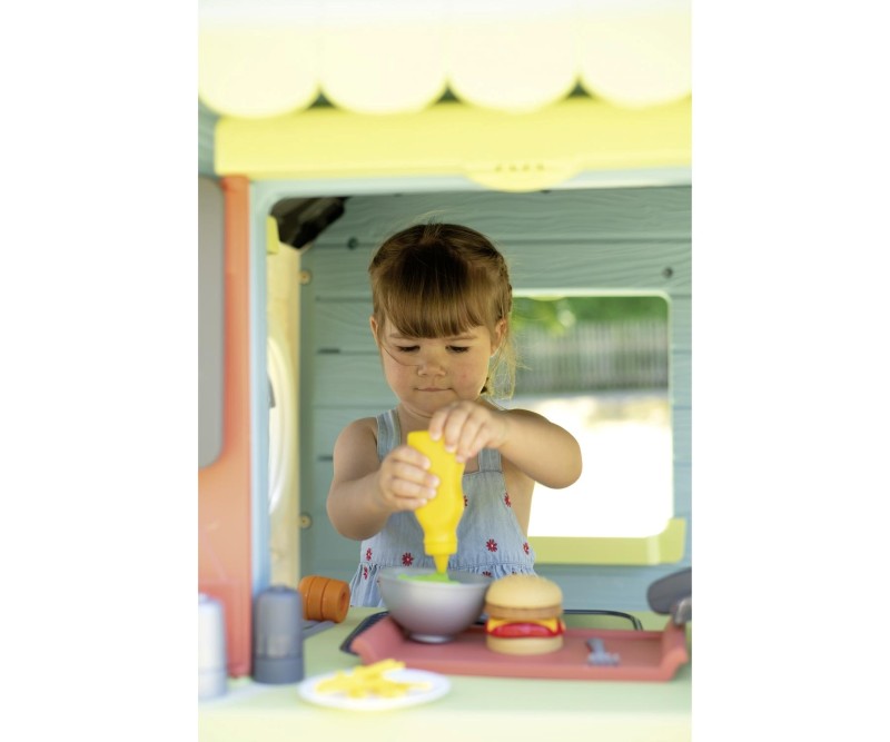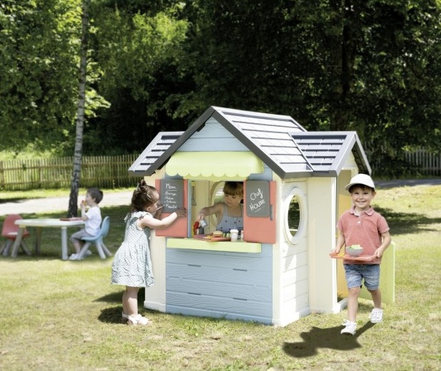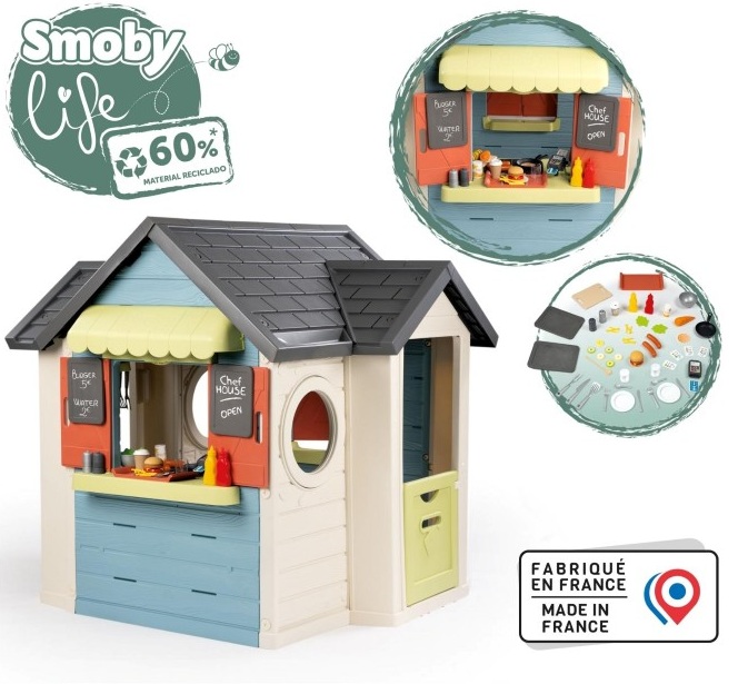 Детска къща с ресторант за игра, с уникален дизайн за готвачи от Smoby Life, изработена от 60% рециклирана пластмаса – първият детски ресторант, който съчетава къщичка за игра, кухня за игра и ресторант под един покрив! Тук децата могат да приемат поръчките на гостите си, да готвят и да се разплащат.