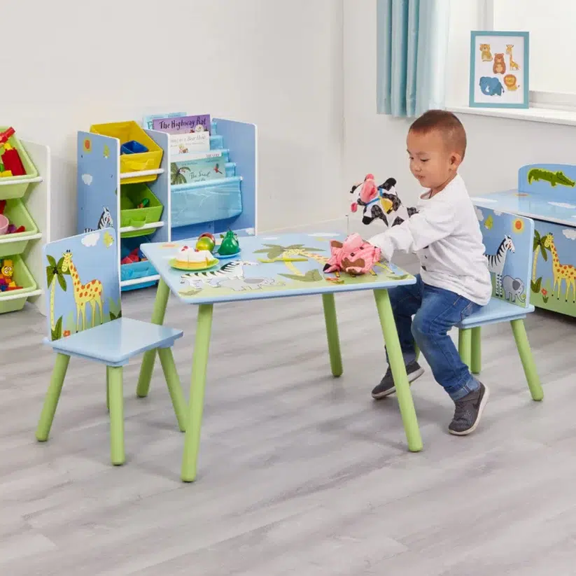 Децата ще имат свое място на което ще могат да развиват своите таланти – да пишат, рисуват, да редят пъзели и конструктори, както и да се хранят. Ярките и цветни мотиви на животни от дивата природа на детска маса със столчета ще се харесат на всяко дете.
