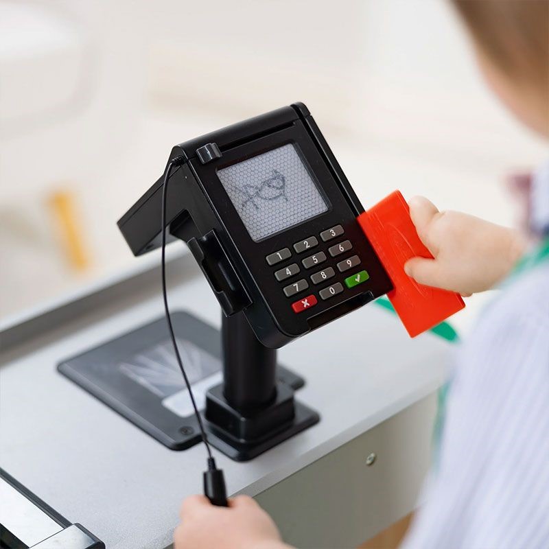 Комплектът стимулира ролевата игра, развива умения за сътрудничество и социално взаимодействие, както и практическа употреба на математика и логика чрез пазаруване и обработка на „плащания“.