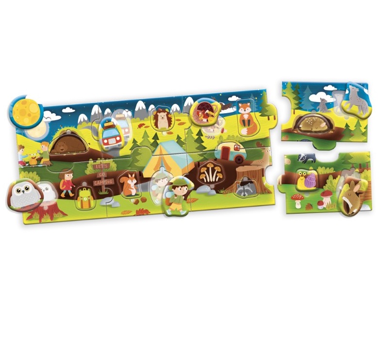 Детски пъзел с включени 24 едри части за подреждане, които ще разкрият цветни и забавни сцени на горски обитатели.