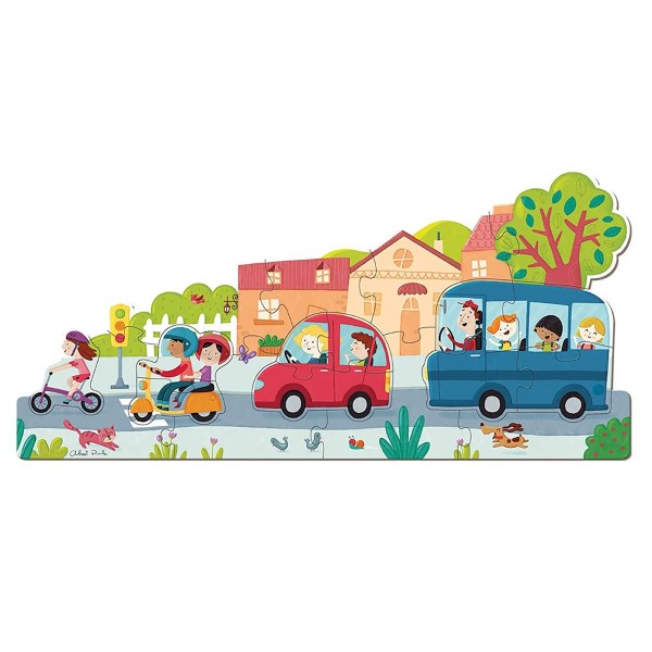 Забавен и образователен пъзел от 18 гигантски части, който ще запознае децата с някои превозни средства.
