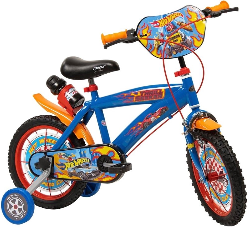 С този велосипед в цветен дизайн на Hot Wheels, младите състезатели ще направят първите си обиколки по безопасен начин.