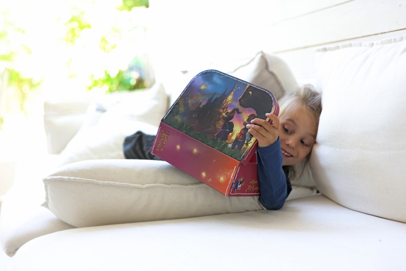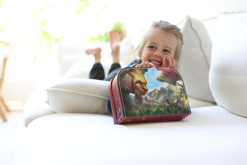 Куфарчето е изработено от висококачествен картон и стоманена дръжка. От външната страна на чантата има вълшебни илюстрации от приключенията на Макс и Хилиън. Вътре в чантата има етикет, на който детето може да напише името си, за да знаете на кого принадлежи. Сега детето е готово за всички приключения с Макс и Хилиън!