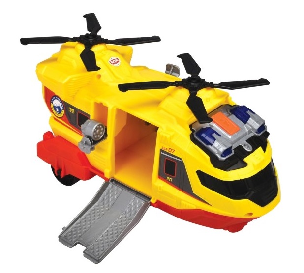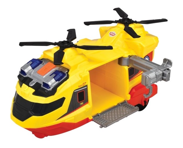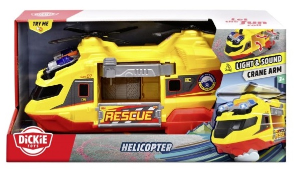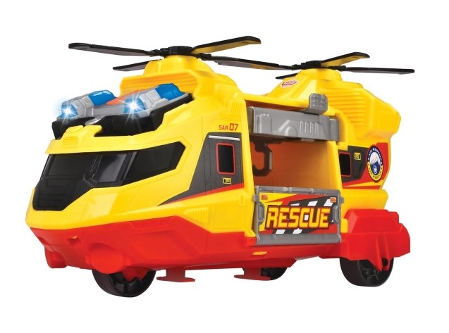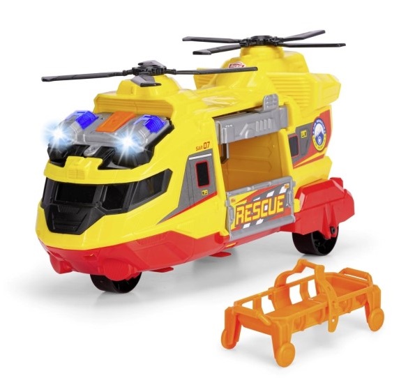 Хеликоптерът на Dickie Toys е универсално аварийно превозно средство, което позволява вълнуващи спасителни мисии както във въздуха, така и на земята. С въртящите се витла децата могат да оставят хеликоптера да лети през стаята им и да изпълнява смели летателни маневри.