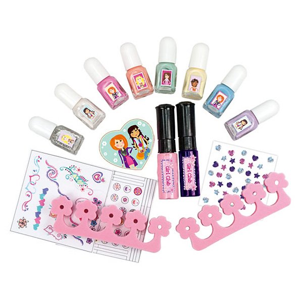 Една вълнуваща колекция от 7 цвята да лакирате ноктите си и 2 химикалки, с които можете да създаде невероятни дизайни. Украсете ноктите си със стикери, брокат и скъпоценни камъни. Съдържание на комплекта: 8 лакове за нокти (7 цветни и 1 блясък), 2 химикалки за рисуване на нокти, стикери, скъпоценни камъни, татуировки, 2 разделители, пила за нокти, упътване.