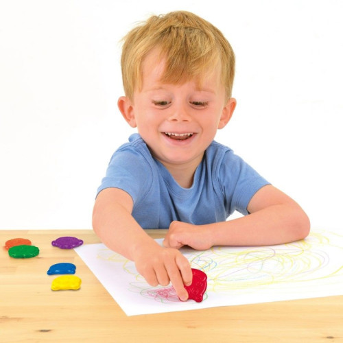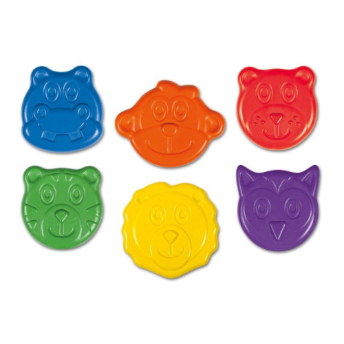 Комплект от 6 цветни пастела с форма на различни животни – лъв, бухал, мече, маймуна, хипопотам и тигър, с които рисуването ще е повече от забавно. Те са лесни за хващане от малките ръчички, а дизайна им ще очарова всяко дете.