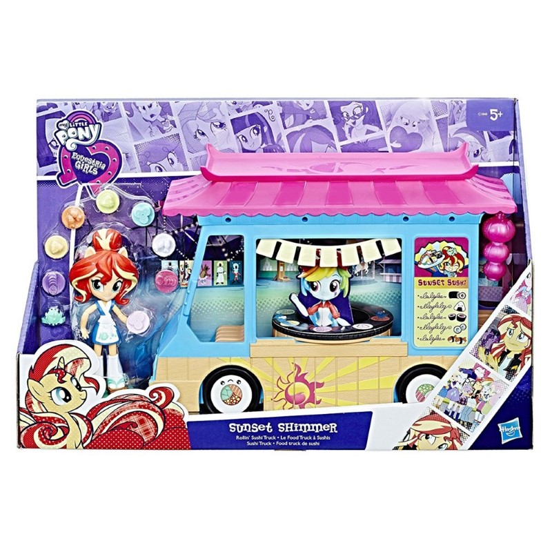 Малкото пони идва при вас със своя камион за суши и тя ще ви поднесе вкусни ястия. Комплектът съдържа: красив автомобил с две места в кабината, въртяща се маса за сервиране, кукла на пони облечена в японски стил.