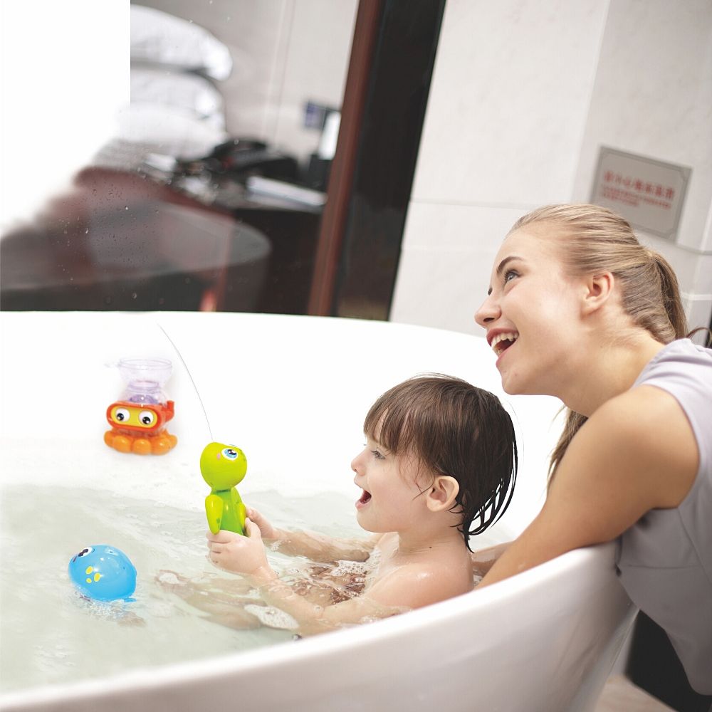 * синя рибка – можете да я подреждате и нанизвате върху октопода, да загребвате вода с нея и да я пресипвате; Размери: 11 х 7,5 х 6,5 см