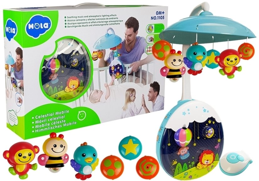 Hola Музикална въртележка за креватче с прожектор и лампа