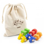 Игра с дървени болтове и гайки от VIGA, която включва завинтване и развиване на цветни форми. Страхотно забавление за вашето дете, докато смесва и съпоставя, като същевременно учи броене, цветове и форми.