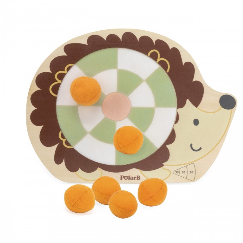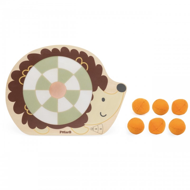 Забавна детска игра с мишена и 6 топки, която е със състезателен характер и ще достави много радост на децата и ще подпомогне тяхното развитие. Благодарение на тази игра, децата могат да подобрят двигателните си умения и координацията, като хвърлят топки в целта, която е под формата на таралеж.