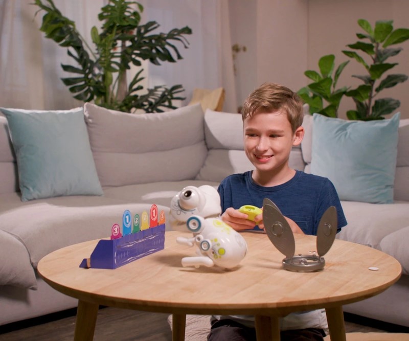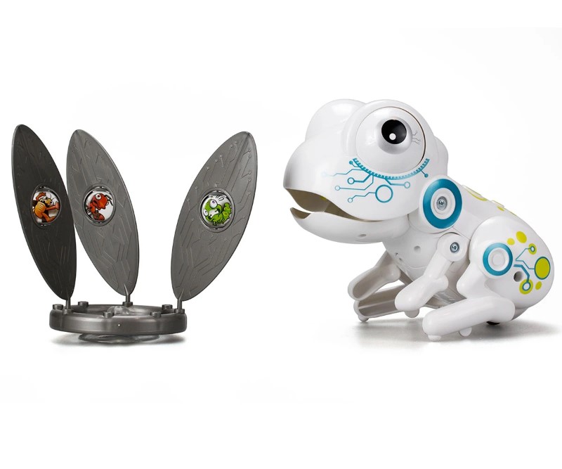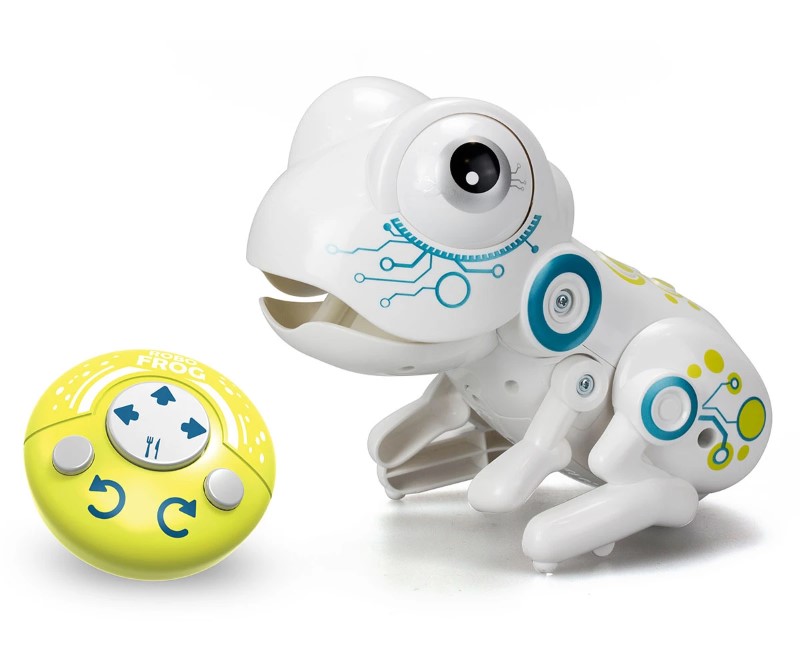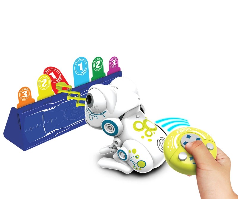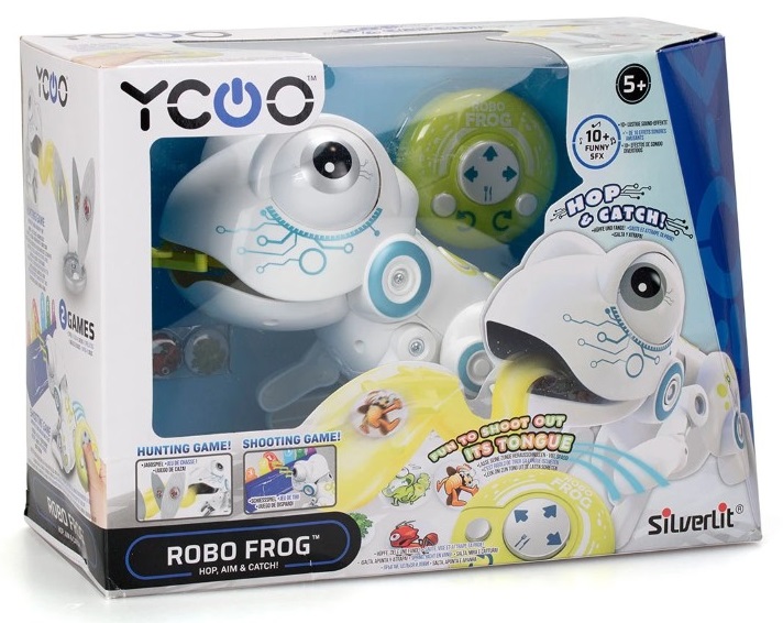 Робо-жабата има смешни и въртящи се очи, разтеглив език, с помощта на който може да хване храната си с дългия си роботизиран език, освен това с помощта на дистанционното можете да я накарате да скача във всички посоки в стаята и да издава всякакви забавни жабешки звуци. Има и забавна игра със стрелба. Спечелете точки, като докоснете най-високото число с езика на Робо-жабката, по мишени под формата на монети с насекоми на тях, поставени върху специалния държач.
