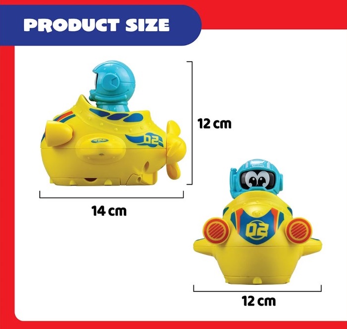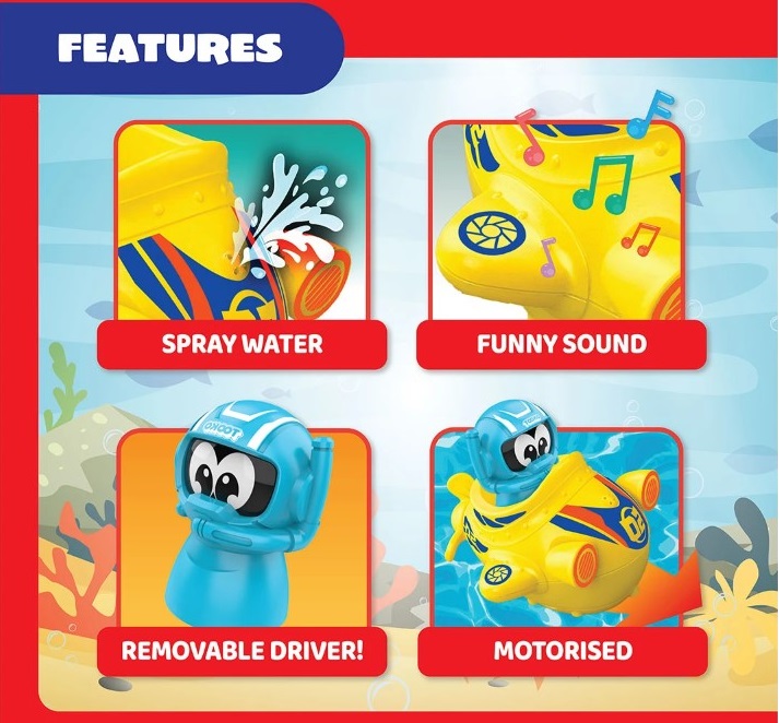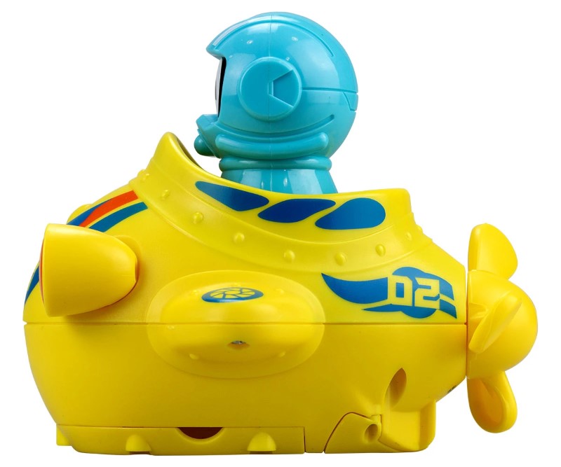 Тази моторизирана лодка-играчка автоматично оживява, когато влезе в контакт с водата, създавайки увлекателно водно приключение за вашето мъниче. Подводницата е не само играчка за баня, но и инструмент за учене и изследване. Проектирана да бъде водоустойчива, тя възпроизвежда забавни звуци и насърчава въображаемата игра. Със своите уникални характеристики, тя прави времето за къпане наистина приятно изживяване!