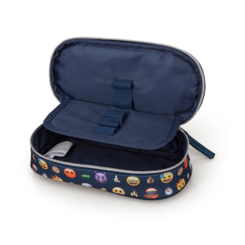 Детски несесер, който ще ви накара да се усмихнете със своите весели емотикони. Изработен е от качествени и здрави материали. Разполага с едно основно отделение, затварящо/отварящо се с цип, в което има достатъчно място за всичките ви учебни пособия, както и отделно място на което можете да наредите вашите химикалки, моливи и маркери. Може да се комбинира с някоя от раниците от същата серия.