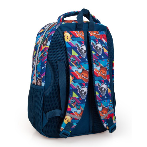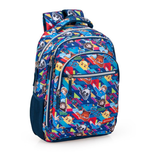 Страхотна раница с DAB дизайн на EMOJI, която ще ви очарова със своята качествена изработка и красив дизайн. Тя е просторна и има достатъчно отделения и място за да съберете всичките си учебници, принадлежности или вещи за през деня. Изработена е от висококачествени и здрави материали. Раницата разполага с три просторни отделения, затварящи/отварящи се с ципове, преден джоб с цип и два странични мрежести джоба подходящи за бутилки с вода или сок. Удобна е за носене на гърба, благодарение на подплатената и мека комфортна материя и широките контурни регулируеми презрамки, които намаляват напрежението на гърба при носене. Разполага и с удобна и мека дръжка за носене. Подходяща е за училище, извън класни дейности, екскурзии, спорт.