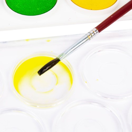 Акварелни бои, съдържащи 12 цвята, лесно разтворими, с високо съдържания на пигмент за добро покритие на картината. В комплекта е включена и четка за рисуване.