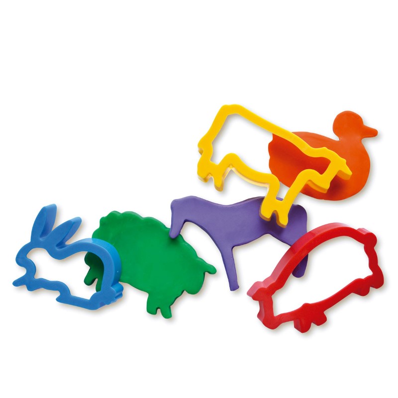 Комплект от 6 броя формички за пластелин с домашните животни, изработени от устойчива еластична пластмаса.