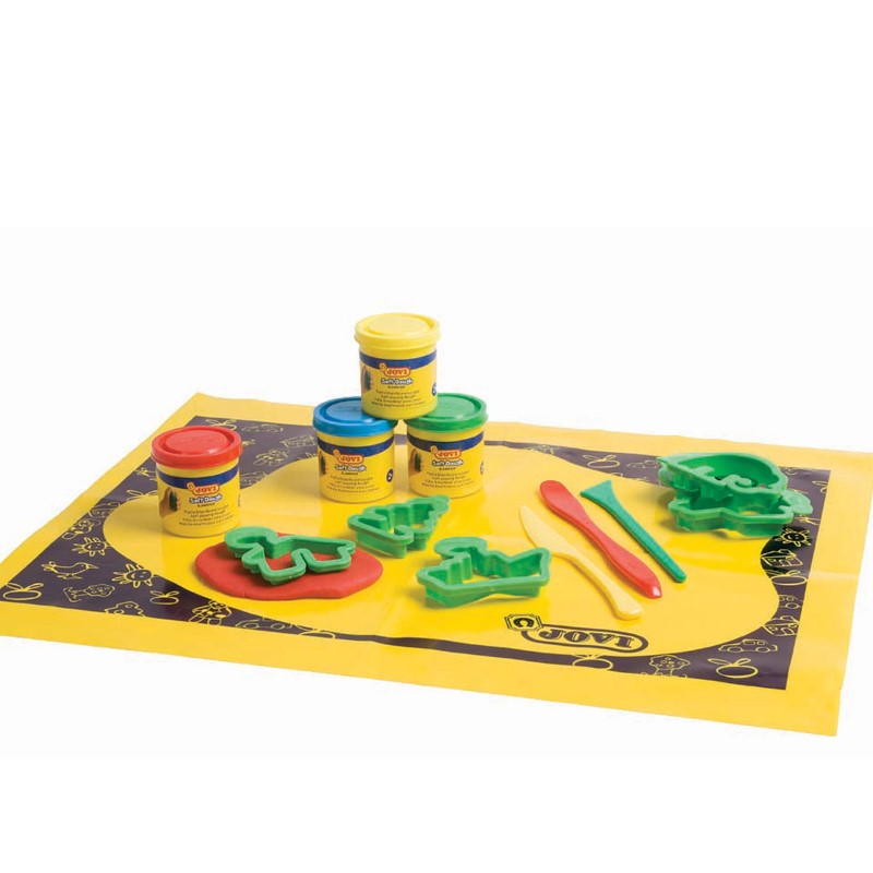 Комплект от 4 меки пластилина, 6 различни формички, 3 инструмента и подложка, с които децата ще могат да се забавляват и моделират на воля.
