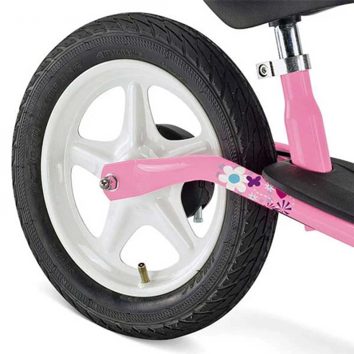 Колелото е с 12,5″ пневматичните гуми, които осигуряват оптимален комфорт и максимално сцепление върху всякакви повърхности, като същевременно са и много тихи. По този начин пневматичните балансиращи велосипеди Puky са идеалното превозно средство за амбициозни деца, които вече искат да карат своето колело по-бързо.