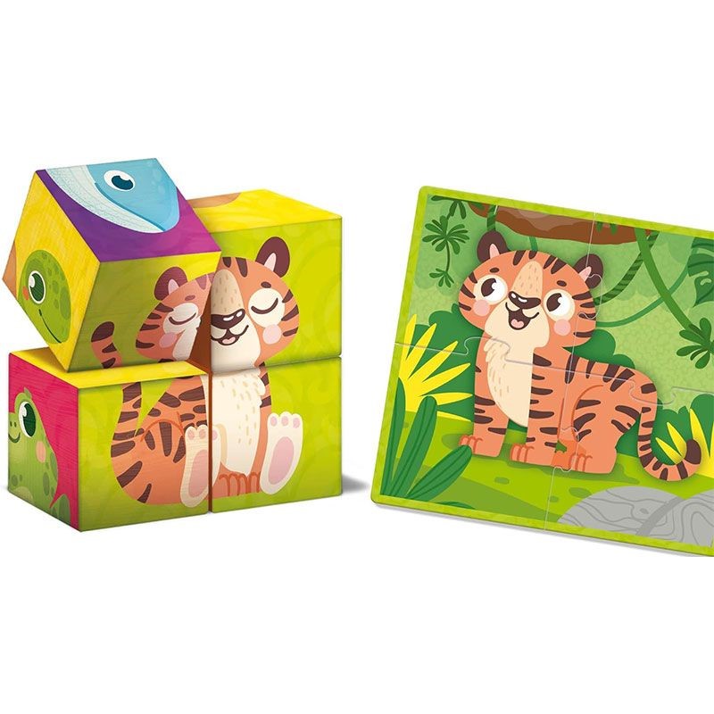 *6 пъзела с животни за направа с 4 дървени кубчета