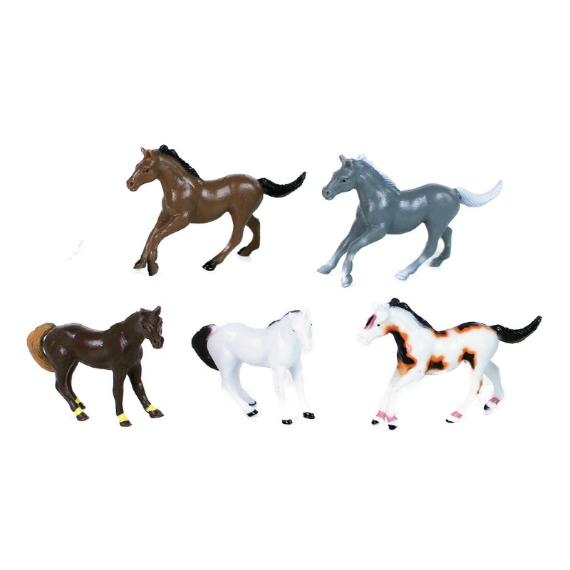 Тази колекция от 5 броя страхотни породи коне, е изработена от твърда гума и са лесно преносими. Фигуркита са подходящи както за украса, така и за игра и ще очароват деца и възрастни.