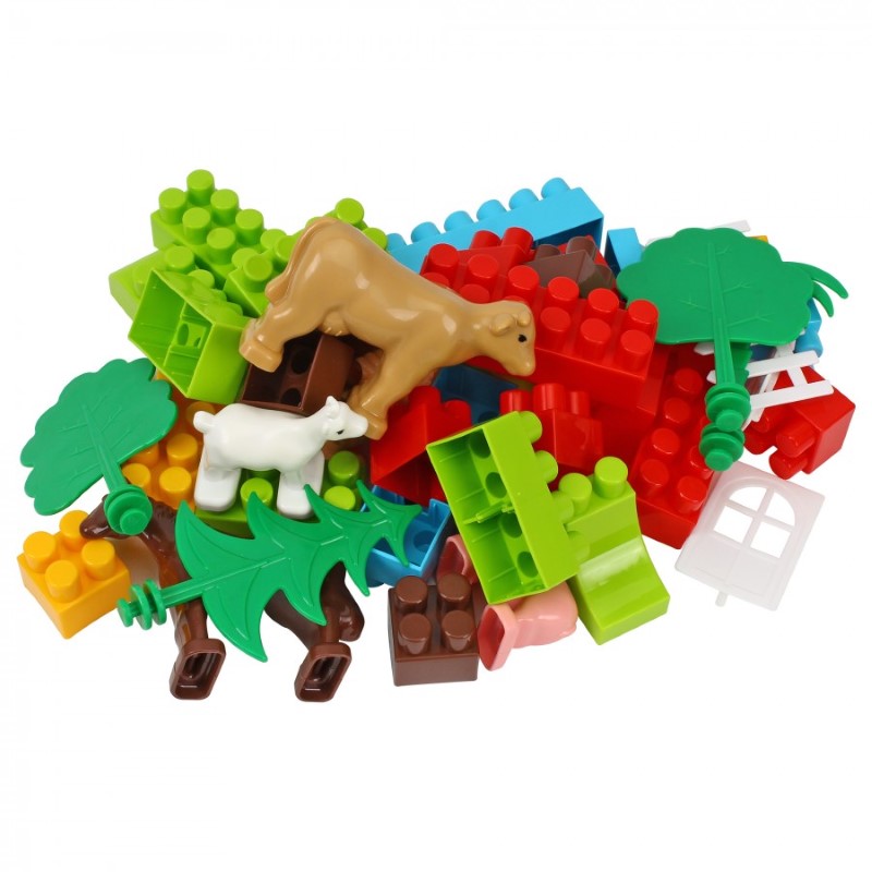 Конструктор с 45 едри части, идеален за забавления на млади фермери и любители на животните, както и фенове на селското стопанство. Частите пасват идеално, което улеснява сглобяването на миниатюрна ферма с малка ограда и създаване на прекрасно място за почивка на животните.
