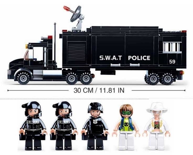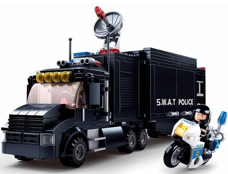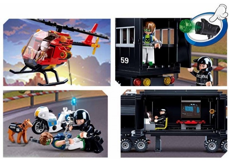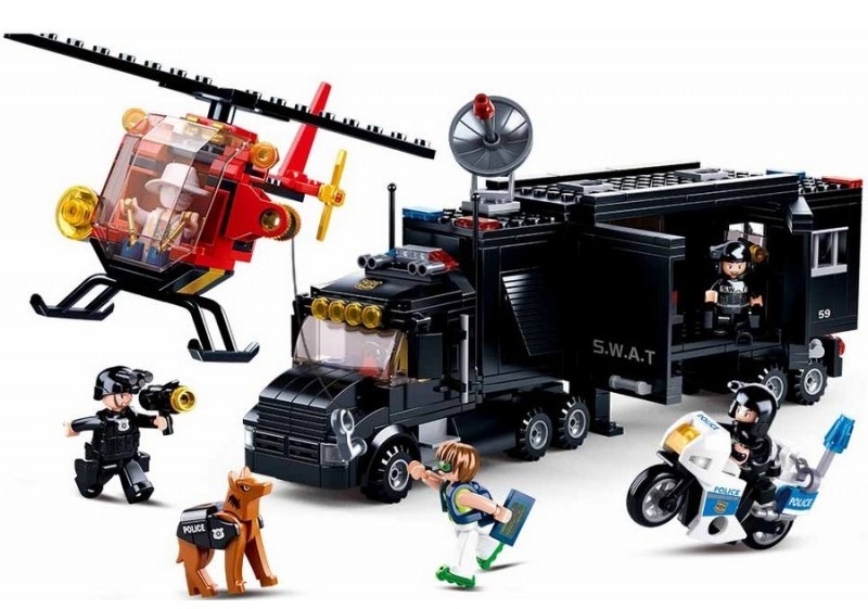 Конструктор Полицейска мобилна база с хеликоптер, 540 части, Sluban