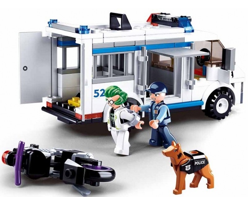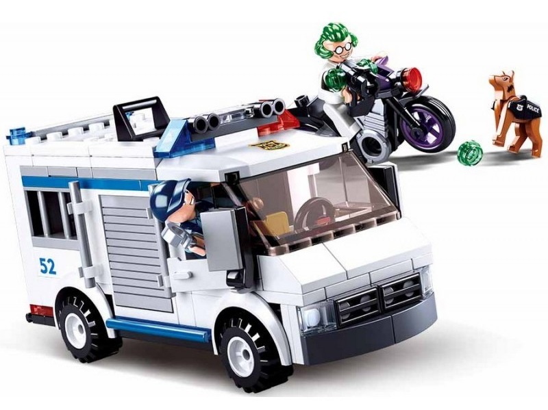 Конструктор Полицейски джип с мотор, 117 части, Sluban