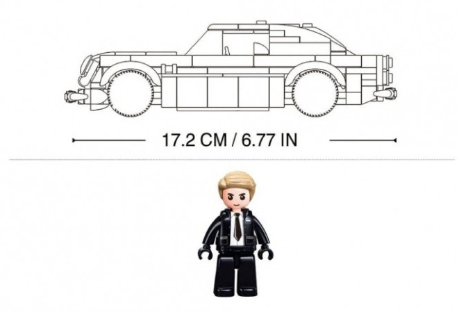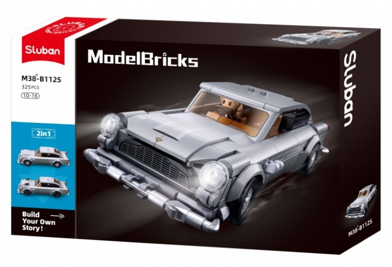 Този конструктор е вълнуващо допълнение към новата гама спортни модели от Sluban, носещо цялата елегантност и вълнение от филмите за тайни агенти директно във вашия дом. Вдъхновен от емблематичния спортен автомобил Aston Martin, този модел се отличава със сребрист цвят и е оборудван с подвижен покрив, което позволява на фигурата на мъжа в костюма да седне зад волана и да се отправи на поредната тайна мисия. Освен това можете да оборудвате колата с шипове на колелата и картечници на предния капак, които придават на модела истински шпионски щрих. Сглобеният моделът е с размери 17 см и е идеален за феновете на бързите коли и шпионските филми.