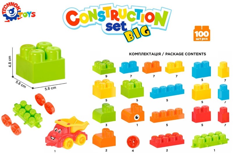 Конструктор с едри части, 100 елемента