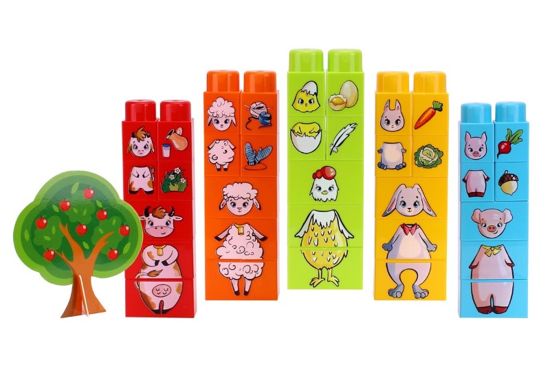 Детски конструктор-пъзел включващ 35 едри части, с които ще можете да ангажирате вниманието на децата в учене и Конструкторът ще помогне на децата да научат имената на домашните животни, тяхното потомство, любимите храни и сферата им на приложение.