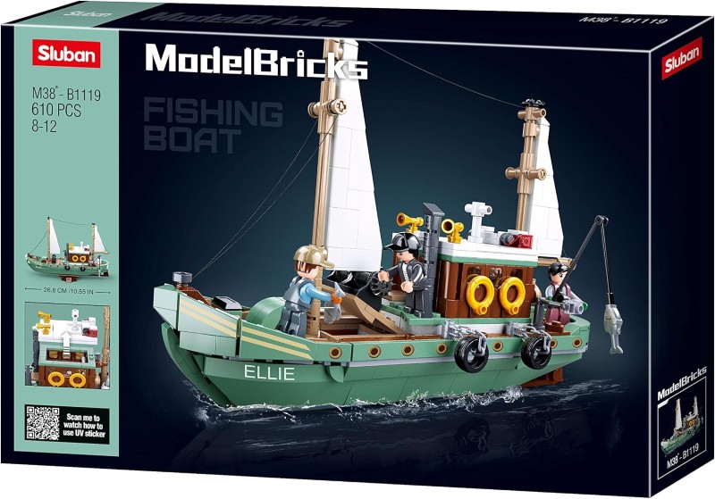 Конструктор с 610 части, с който можете да си сглобите Рибарска лодка, с която да плавате в морето.