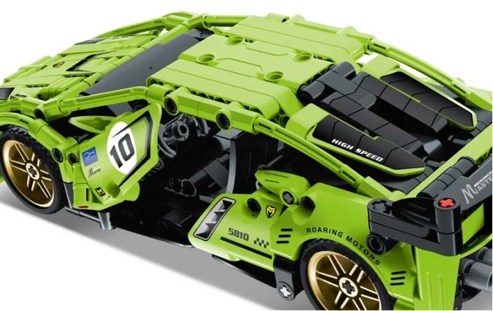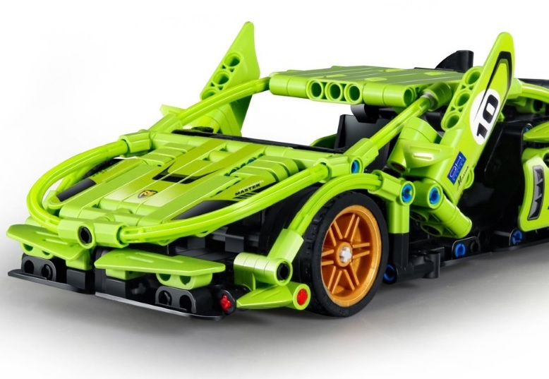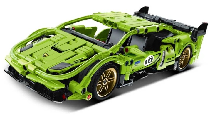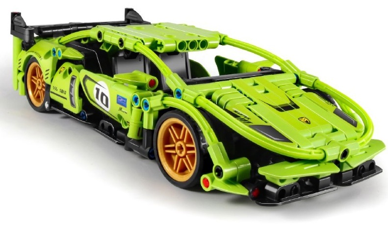 Конструктор включващ 457 части, с които децата могат да създадат своя собствена спортна кола с модерен дизайн и с Pull Back система – издърпващ се мотор за свръхзвукови състезателни приключения.
