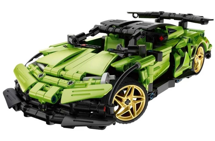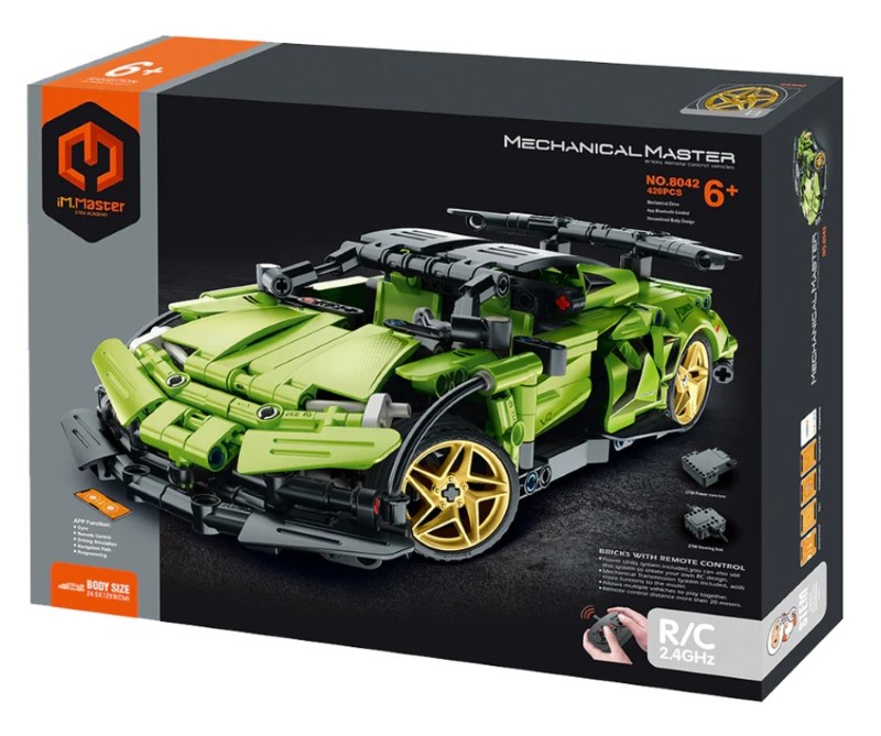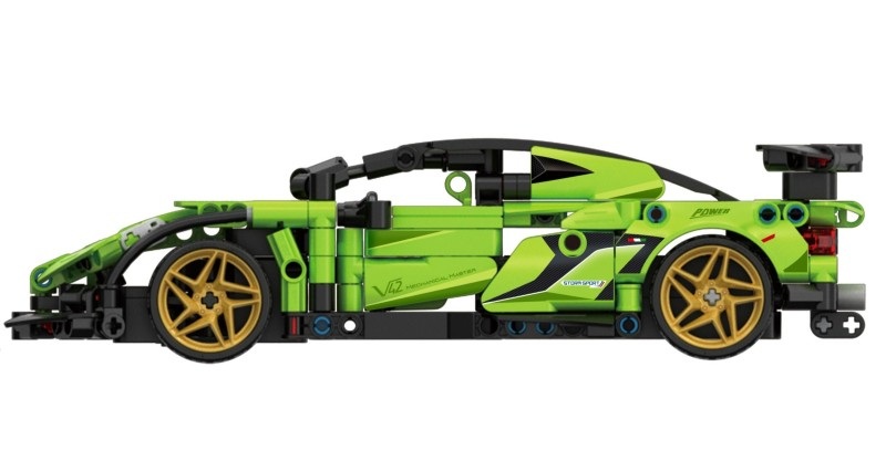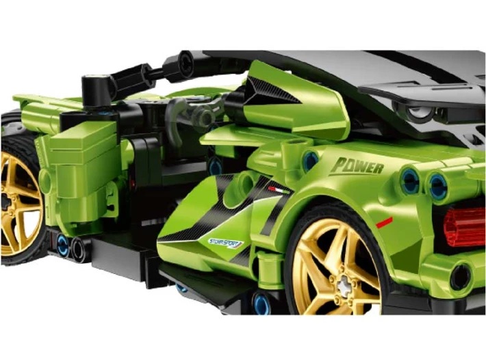 Конструкторът се сглобява лесно, а частите са напълно безопасни и изключително устойчиви. Със здрава и стабилна конструкция, моделът се контролира както чрез дистанционно, така и чрез приложение за телефон. С негова помощ могат да се регулират посоката на завиване, пътят на движение и програмирането на колата. Аеродинамичният дизайн е модерен и реалистичен, в зелен цвят, с ефектни елементи – златни джанти, фарове, ауспух и купе. Комплектът ще допринесе за развиване на фината моторика, търпението и логическото мислене на детето, докато то се забавлява и играе!