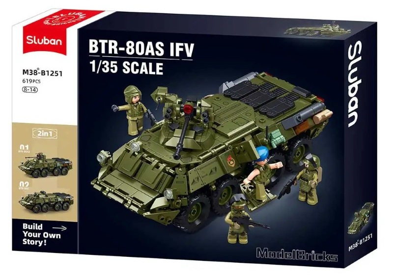 Конструктор за сглобяване на танк BTR80AS, който предлага възможност за сглобяване на две различни версии. Той е насочен към деца, които се интересуват от военни машини и желаят да развият своята креативност, както и техническите си умения.
