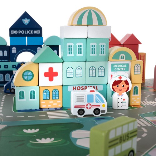 С тези блокчета децата ще научат за света около нас, какви сгради има в града, ще развиват ръчните си умения, ще се научат на прецизност и търпение, ще упражняват разпознаването на форми, цветове, букви и числа.