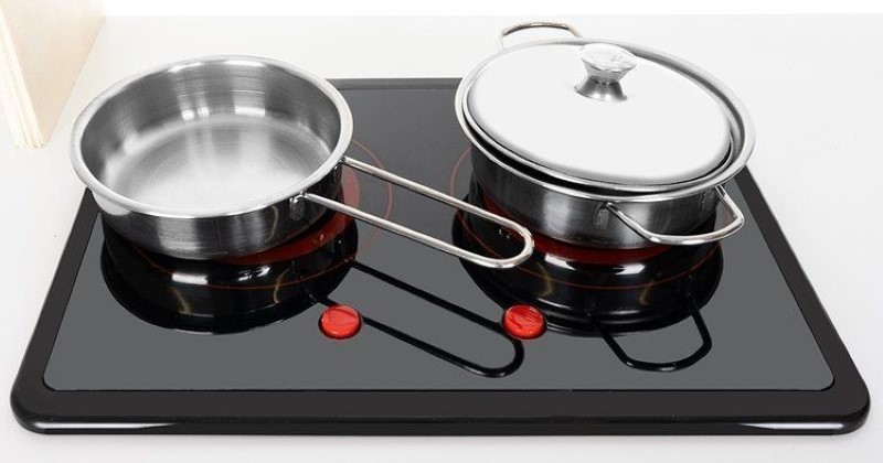 Кухнята е с модерен дизайн, който всички малки готвачи ще оценят. Има имитация на два котлона, на които можете да приготвите вкусни ястия. Когато завъртите копчетата, ще чуете отчетливо щракване. Когато приключите с готвенето ще трябва да измиете чиниите в мивката.