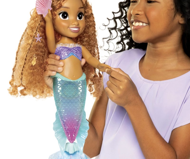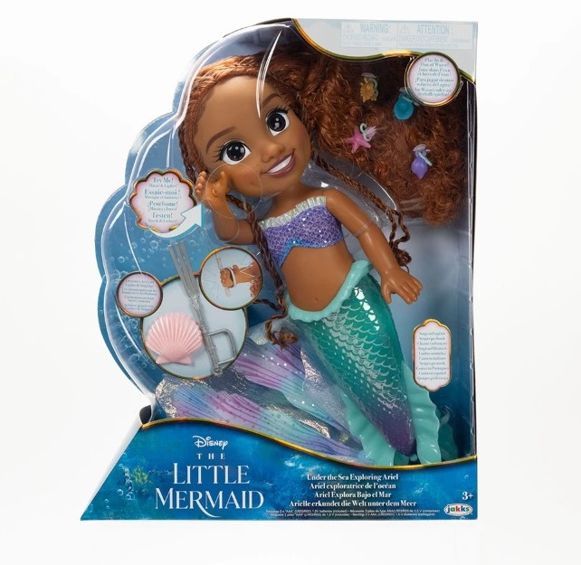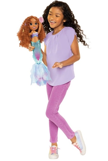 Сладката кукла Ариел, вдъхновена от Малката Русалка на Дисни, ще дойде при вас като красива русалка и ще ви изпее своята песен „Част от твоя свят“, докато опашката й свети.