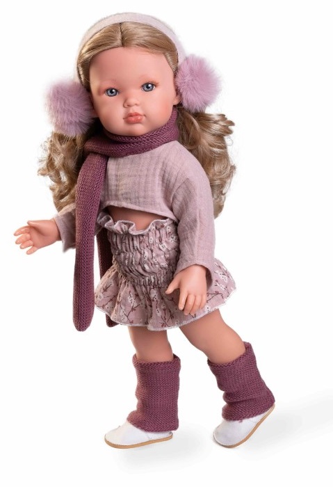 Кукла Белла е очарователно русокосо момиченце с височина 45 см и винаги е в крак с модните тенденции. Днес тя е решила да се облече с красива пола на цветя, къс топ и кожени ботуши, които чудесно се допълват от плетения и шал и калцуни, а за да не и е студено на главата си има ушанка с помпони.