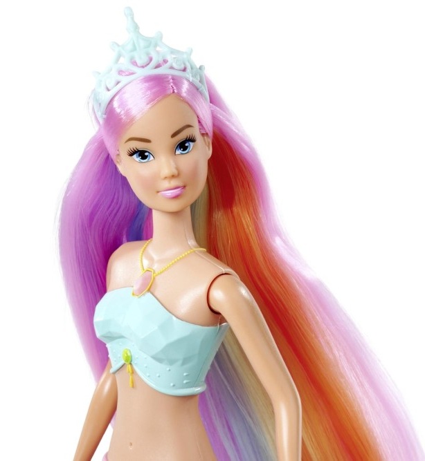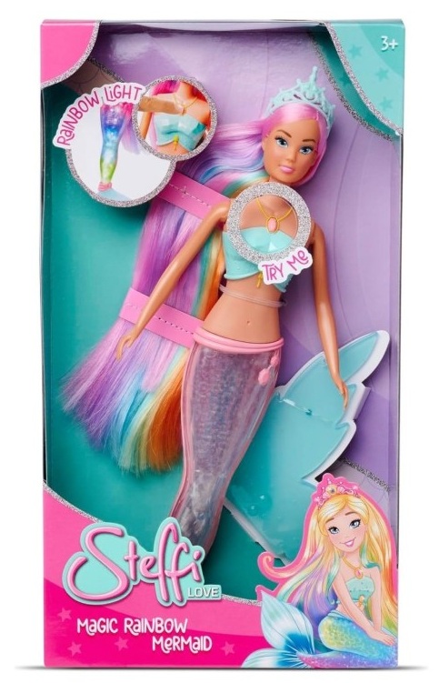 Красивата кукла Стефи от Simba Toys идва при вас като русалка със светеща опашка. Когато докоснете бутона на огърлицата й, нейната опашка ще започне да свети в магически цветове.