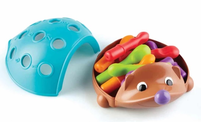 * Цветните бодли на таралежа помагат на децата да изградят умения за разпознаване на цветове, сортиране и броене
