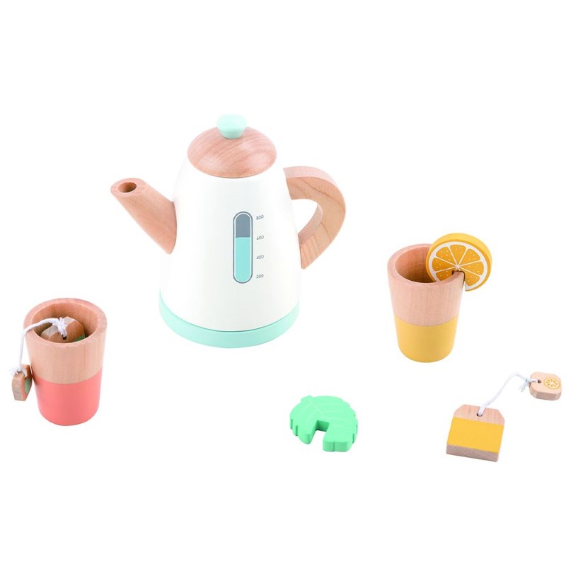 Този сервиз за чай е страхотно допълнение към принадлежностите за сервиране и готвене, кексчетата с подноси, храните за рязане и останалите продукти от тази серия. Комплектът насърчава творчеството и въображението на децата, изключително подходящ е за ролеви игри.